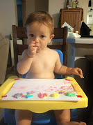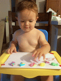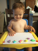 The masterpiece above was the result of our adventures in finger painting recently. I had pinned this great idea from Fun at Home with Kids a little while ago and was excited to give it a try. You can see more of Brady's artistic adventures below. But first, the edible finger painting inspired me to come up with a top 10 list for fun with toddlers. This was a bit of a challenge because, as you well may know, to a toddler everything is a toy (especially the remotes). And though, everyday household items provide valuable learning opportunities as well, there are certain toys that promote some great brain development during those first couple years. So, without further ado: