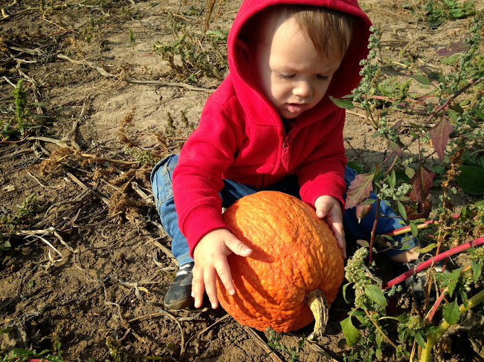 But the other day during some play time (please excuse the naked baby!) with me and with some real pumpkins added to the basket Brady really explored the items gently and inquisitively and had a great time!